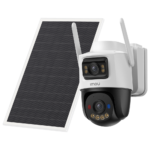 Kit de videovigilancia solar profesional con cámara dual 5MP, conectividad 4G/WiFi, batería integrada de 10000mAh y panel solar de 8W. Sistema autónomo ideal para instalaciones sin suministro eléctrico en perímetros, almacenes, obras y zonas remotas que requieren vigilancia continua con detección inteligente de personas.