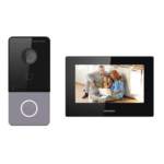 Kit completo de videoportero IP WiFi Hikvision DS-KIS605-P(C) que integra monitor interior de 7 pulgadas y placa de calle con cámara HD. Solución profesional lista para instalar con conectividad inalámbrica, comunicación bidireccional y visión nocturna por infrarrojos, ideal para viviendas unifamiliares, pequeñas oficinas y accesos controlados.