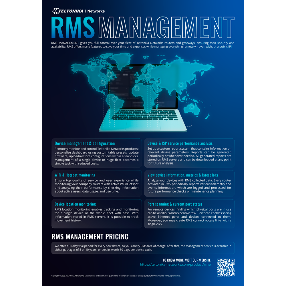 • Pack de 3 años de gestión para la Plataforma Cloud Teltonika RMS