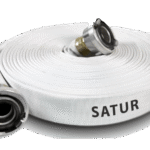 Manguera de incendios plana SATUR, con diámetros de 25, 33, 38, 45, 52, 65, 70, 100 mm, con 15, 20, 25, 30, 60 metros de longitud.