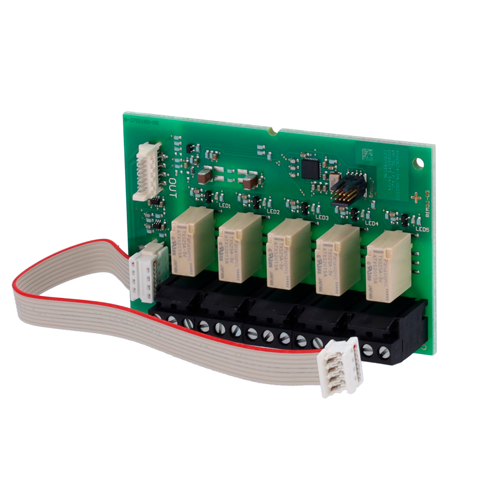 - Cinco relés configurables