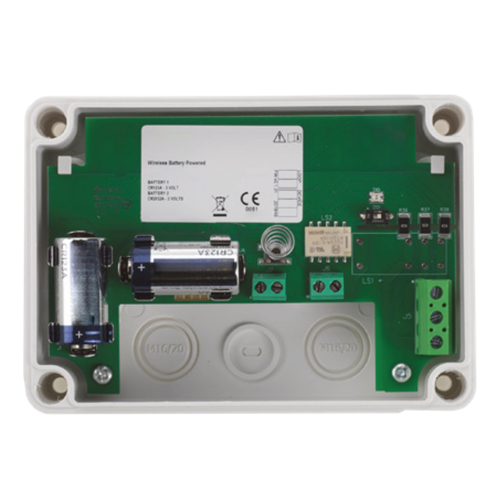 – Módulo de salida inalámbrico. – Frecuencia de funcionamiento: 868 – 870 MHz. – Potencia radiada máxima: 14dBm (25mW). – Salida de relé máx. 2A @30Vc