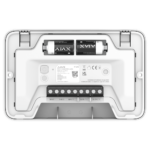 Módulo de entrada/salida direccionable inalámbrico certificado EN54-18 que permite la integración de sistemas de terceros con centrales de detección de incendios Ajax. Comunicación bidireccional vía protocolo Jeweller con 2 entradas y 2 salidas supervisadas, ideal para instaladores profesionales que requieren ampliar funcionalidades de sistemas certificados contra incendios.