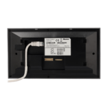 El montaje del monitor se realiza mediante soporte empotrable o superficial, adaptándose a diferentes requisitos arquitectónicos. Las dimensiones compactas y el diseño con certificación de calidad permiten instalaciones discretas que se integran armoniosamente en cualquier entorno.