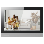 Monitor videoportero interior Hikvision DS-KH8380-WTE1 con pantalla táctil de 7 pulgadas y conectividad IP WiFi. Ideal para instalaciones profesionales de control de accesos que requieren comunicación bidireccional, visualización en tiempo real y gestión remota de múltiples puntos de entrada en edificios residenciales y comerciales.
