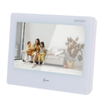 El monitor es compatible con la plataforma Hik-Connect para acceso remoto desde smartphones y tablets, permitiendo atender llamadas de videoportero, visualizar visitantes y activar aperturas desde cualquier ubicación con conexión a internet. Esta característica añade una capa adicional de seguridad y comodidad para usuarios que requieren movilidad.