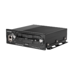 El grabador utiliza conectores M12 reforzados, estándar en aplicaciones vehiculares que requieren resistencia a vibraciones constantes y condiciones ambientales adversas. La compresión H.265+ optimiza el ancho de banda y el espacio de almacenamiento, factor crítico en sistemas que operan 24/7 sin acceso continuo a redes externas. El dispositivo soporta grabación continua, por detección de movimiento y por eventos programados, adaptándose a diferentes políticas de retención de evidencias.