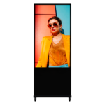El diseño vertical tipo totem permite una instalación elegante y funcional en recepciones, pasillos comerciales, vestíbulos de hoteles y áreas de espera. Su construcción slim optimiza el espacio disponible mientras mantiene una presencia visual impactante que capta la atención del público objetivo de manera efectiva.