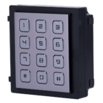 Placa videoportero modular Hikvision DS-KD-KP con teclado numérico para control de accesos mediante código PIN. Diseñada para instalaciones de videoportería IP profesional, ofrece protección IP65 contra polvo y agua. Compatible con sistemas modulares KD8 Series Pro de Hikvision para edificios residenciales y comerciales.