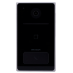 Placa de videoportero IP profesional Hikvision DS-KV6133-WME1 diseñada para instalación en superficie en viviendas unifamiliares y accesos residenciales. Integra cámara de 2 Megapíxeles con visión nocturna, doble conectividad WiFi y PoE, lector MIFARE para control de accesos y protección IP65 contra intemperie.