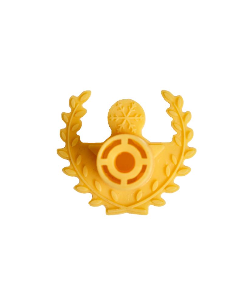 Precinto Logotipo FI 5.000 Precinto con logotipo. Color: amarillo. Válido para anillas ranuradas. Fabricado en plástico endurecido. Disponible en: verde y azul. Se suministra en bolsas de 500 unidades.