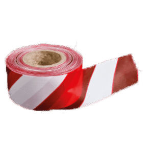 Cinta de balizamiento anónima para delimitar diferentes espacios. Disponible en blanco/rojo y amarillo/negro.