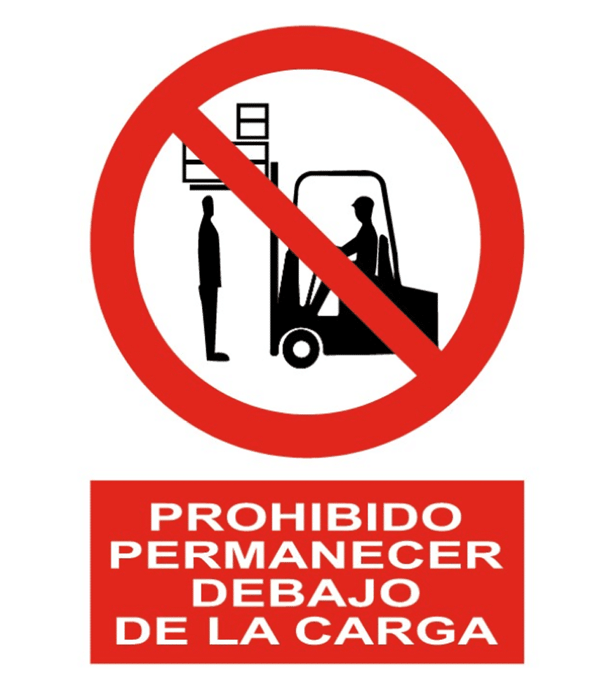 Señal / Cartel de Prohibido permanecer debajo de la carga