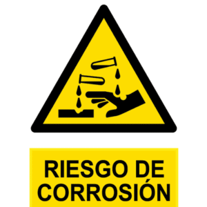 Señal / Cartel de Riesgo de corrosión. Homologada. Según UNE 81-501. PVC 0,7 mm, 2 mm. Aluminio 0,8 mm y Adhesivo. Varios tamaños.