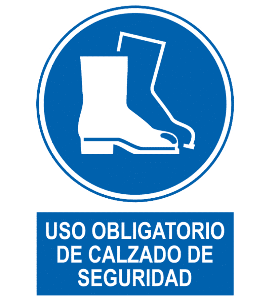Señal / Cartel de Uso obligatorio de calzado de seguridad. Homologada. Según UNE 81-501. PVC 0,7 mm, 2 mm. Aluminio 0,8 mm y Adhesivo. Varios tamaños.
