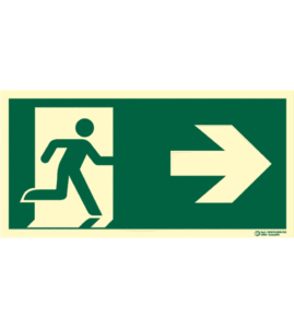 Señal / Cartel de Evacuación con flecha. Clase B. Luminiscente. Segun UNE-23035/4 2003. Disponible en PVC 0,8 mm y aluminio 0,8 mm