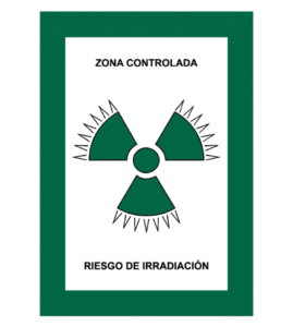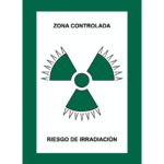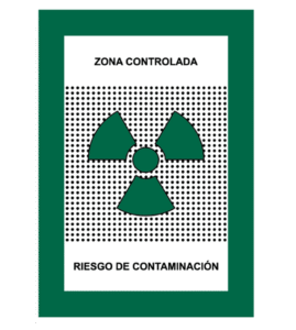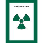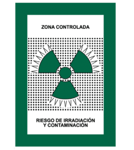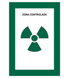 La Zona de controlada es la zona en la que exista la posibilidad de recibir dosis efectivas superiores a 6 mSv/año oficial o una dosis equivalente superior a 3/10 de los límites de dosis equivalentes para cristalino, piel y extremidades. También tienen esta consideración las zonas en las que sea necesario seguir procedimientos de trabajo, ya sea para restringir la exposición, evitar la dispersión de contaminación radiactiva o prevenir o limitar la probabilidad y magnitud de accidentes radiológicos o sus consecuencias.. Se señaliza con un trébol verde sobre fondo blanco.