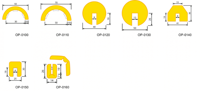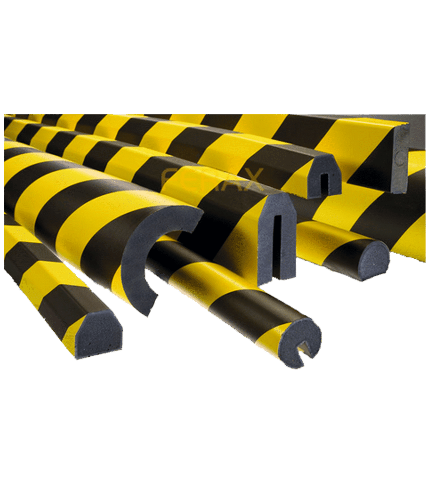Los Protectores de uso industrial. Tubos y cantos están disponible en color Amarillo/negro. Son ideales para la protección de pequeñas superficies, aristas, esquinas, vigas y perfiles de todo tipo
