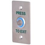 Pulsador de liberación de puertas EXITBUTTON303-SLIM-LED fabricado en acero inoxidable con LED indicador integrado. Diseño ultradelgado compatible con montaje empotrado o en superficie. Contactos NC/NO/COM para máxima versatilidad en instalaciones de control de accesos y sistemas de seguridad.