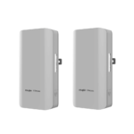 El Reyee RG-EST310 V2 es un radioenlace inalámbrico profesional WiFi 5 (802.11ac) de doble flujo que opera en la banda de 5 GHz, diseñado para establecer conexiones punto a punto estables hasta 1 km de distancia. Incorpora alimentación PoE, protección IP54 para instalaciones exteriores y emparejamiento de fábrica que garantiza reconexión automática tras cortes de energía.