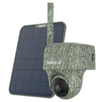 Cámara trail profesional con resolución 4K UHD y conectividad 4G LTE autónoma mediante panel solar SP2 integrado. Diseñada para vigilancia remota en entornos naturales, perímetros sin infraestructura eléctrica y observación de fauna, incorpora rotación panorámica 360°, detección inteligente de especies animales y visión nocturna invisible mediante LEDs infrarrojos 940nm sin brillo. Acabado camuflado para integración discreta en exteriores.