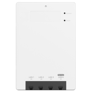 RG‑RAP62‑Wall es un punto de acceso Wi‑Fi 6 (802.11ax) de montaje mural pensado para entornos interiores donde se busca combinar alto rendimiento inalámbrico, conectividad cableada y estética integrada en pared. Gracias a su diseño tipo placa compatible con cajas de empotrar estándar (86 × 86 mm), se integra discretamente en oficinas, hoteles, viviendas inteligentes o espacios comerciales sin ocupar espacio visible en techo o estanterías, ofreciendo velocidades inalámbricas de hasta ~1.775 Mbps (574 Mbps en 2,4 GHz y 1.201 Mbps en 5 GHz) mediante tecnología dual‑band MU‑MIMO 2×2.
