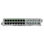 El módulo integra 8 puertos RJ45 Gigabit Ethernet para conexiones de cobre tradicionales, 16 puertos SFP (Small Form-factor Pluggable) Gigabit para enlaces de fibra óptica de 1G, y 2 puertos SFP+ de 10 Gigabit para uplinks de alta capacidad. Esta configuración permite a los administradores de red diseñar topologías flexibles que combinan diferentes medios de transmisión según las necesidades específicas de cada segmento de la instalación.