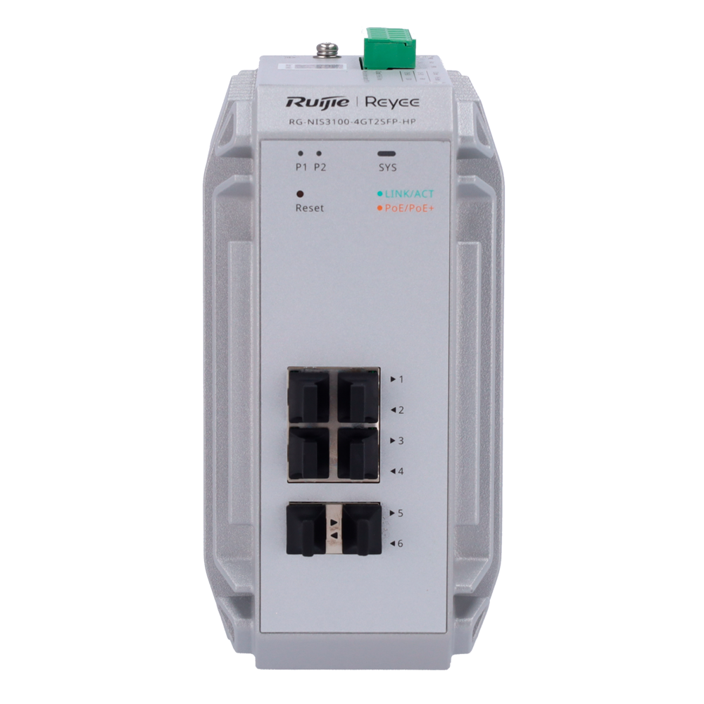- 4 puertos RJ45 10/100/1000 Mbps + 2 Puertos SFP Gigabit