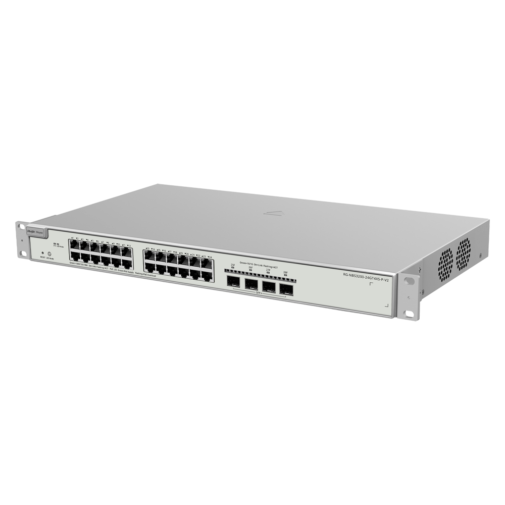 El Ruijie Reyee RG-NBS3200-24GT4XS-P-V2 es un switch gestionable de capa 2 (L2) que combina alto rendimiento, alimentación PoE+ y administración avanzada en un diseño compacto y confiable. Diseñado para entornos empresariales, redes de oficinas, campus o sistemas de videovigilancia, ofrece una solución robusta y eficiente para la distribución de red y alimentación de dispositivos.