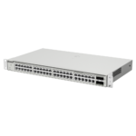 Switch L3 gestionado de 48 puertos Gigabit con 4 enlaces ascendentes SFP+ de 10G, diseñado para infraestructuras de red empresariales y centros de datos que requieren alto rendimiento, seguridad avanzada y gestión cloud centralizada. Protección contra sobretensiones de 6KV y políticas de seguridad multicapa.