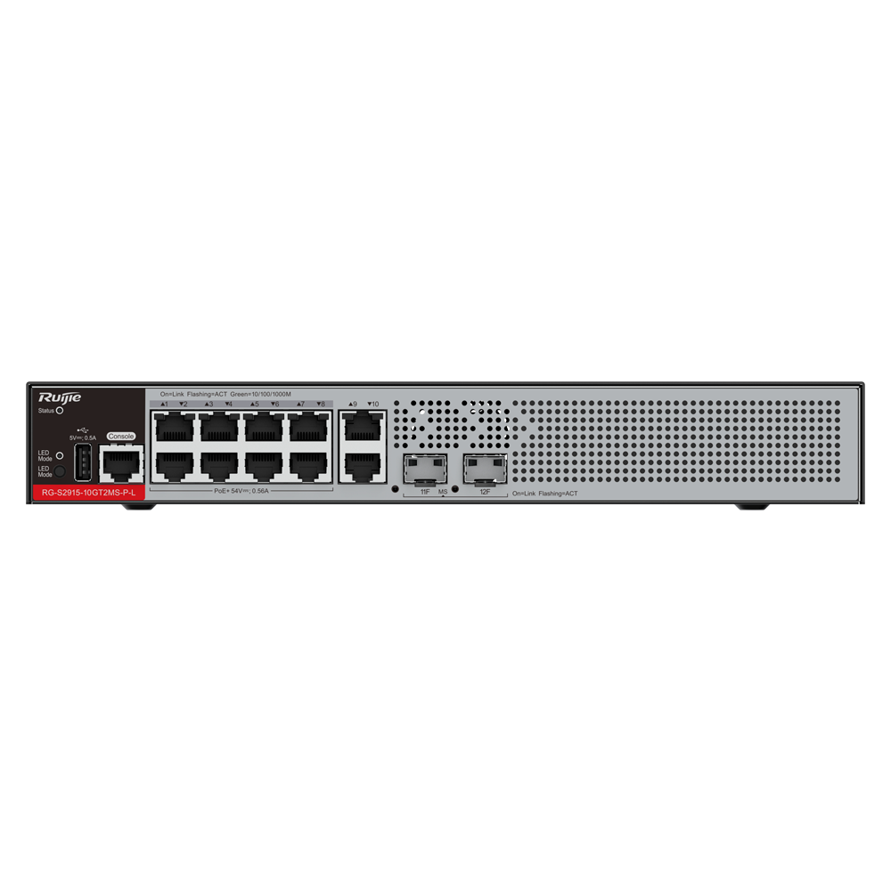 Switch Ethernet | Gestionable | Puertos RJ45: 8 | Velocidad: Gigabit | PoE: Sí | Uplink: SFP | Marca: Reyee | Ref.: RG-S2915-10GT2MS-P-L