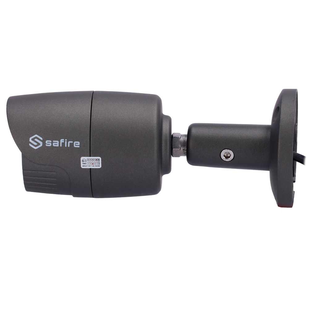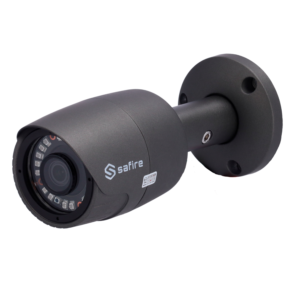 Cámara bullet IP de 5 megapíxeles Safire Smart SF-B029G-3KE con tecnología HD 4 en 1, ideal para instalaciones de videovigilancia perimetral en exteriores. Equipada con iluminación infrarroja de 20 metros, óptica fija de 3.6mm y certificación IP66 que garantiza resistencia total a polvo y agua, perfecta para entornos industriales y comerciales exigentes.