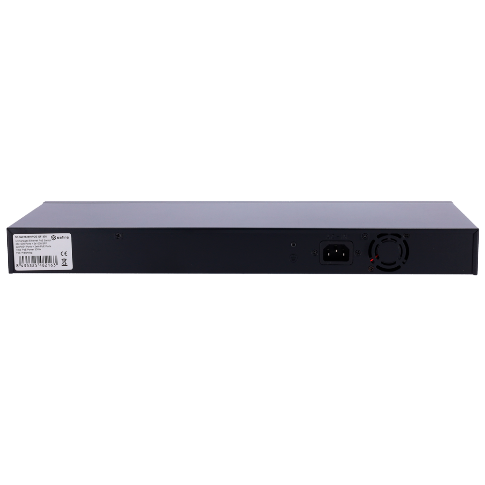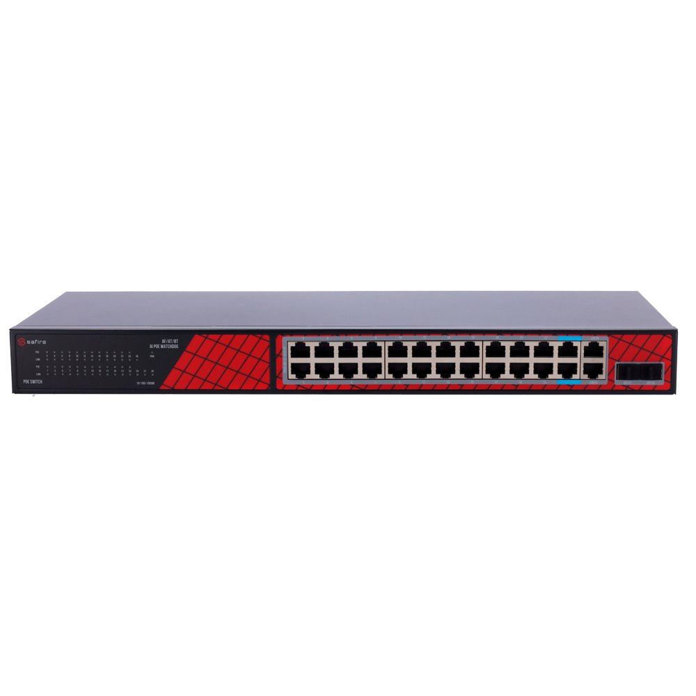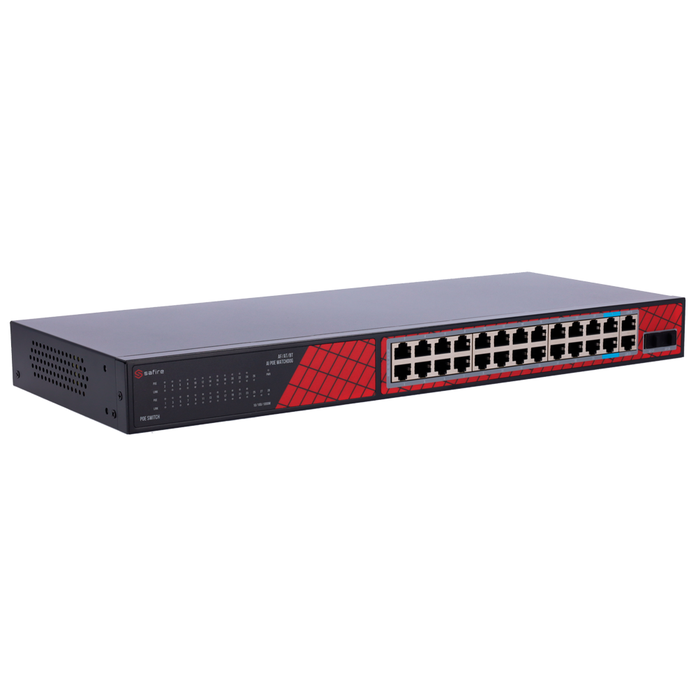 Switch Ethernet | No Gestionable | Puertos RJ45: 22 | Velocidad: Gigabit | PoE: Sí | Uplink: SFP | Marca: Safire Smart | Ref.: SF-SW2824HIPOE-GF-300