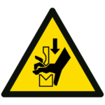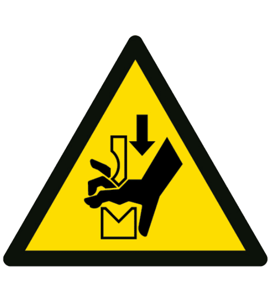 El cartel nos informa de una zona dónde hay una máquina o cualquier elemento que puede coger las manos al usuario y causar un atrapamiento de las mismas.