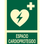 Señal / Cartel de Espacio cardioprotegido. Clase B. Luminiscente. Segun UNE-23035/4 2003. Disponible en PVC 0,8 mm y aluminio 0,8 mm.