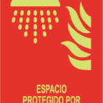 La señal “Espacio protegido por sistema de extinción” en Clase A indica de forma clara que el recinto o zona dispone de un sistema fijo de extinción de incendios.