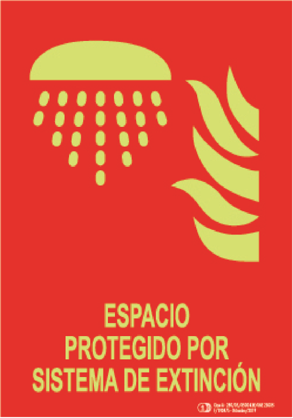 Su acabado fotoluminiscente (280 mcd) garantiza una alta visibilidad en condiciones de humo o baja iluminación, ayudando a ocupantes y equipos de intervención a identificar rápidamente el tipo de protección existente y actuar con seguridad.