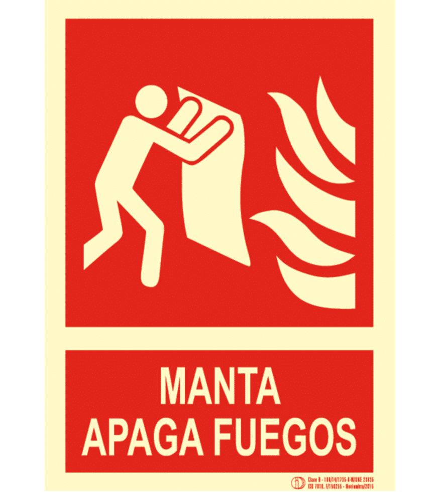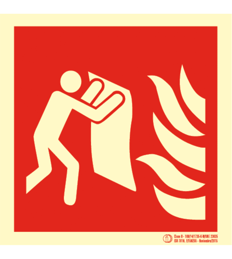 Señal / Cartel de manta apagafuegos fotoluminiscente. Clase B.