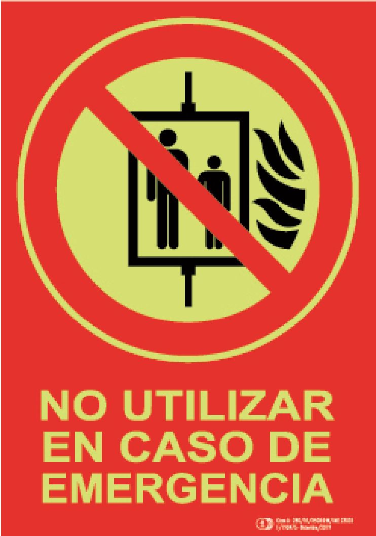 Se coloca normalmente en zonas donde es fácil equivocarse (por ejemplo, junto a accesos, puertas técnicas, equipos elevadores o instalaciones no aptas en emergencia).