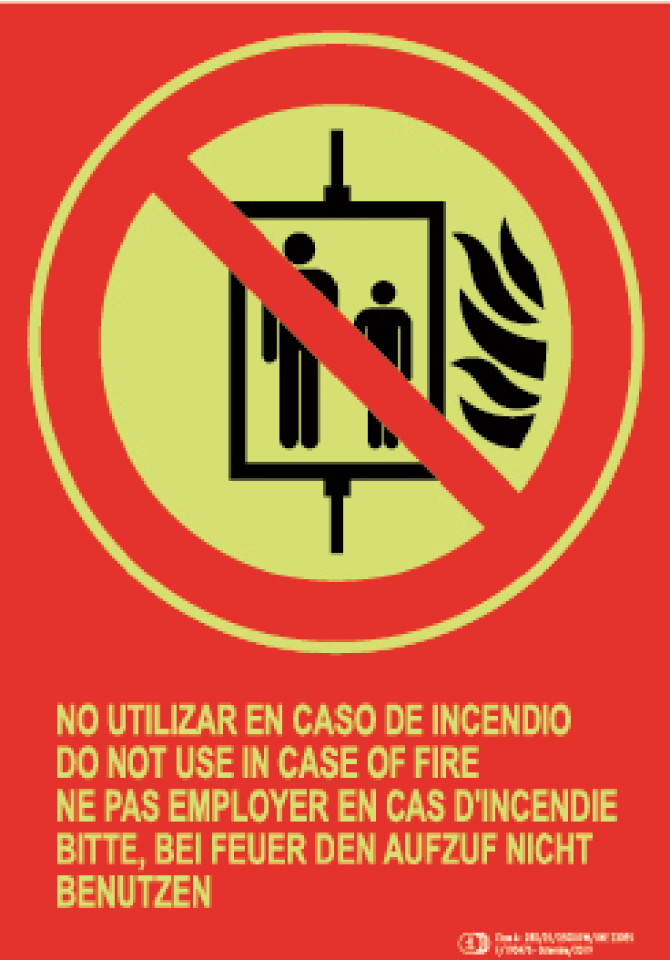 Se coloca normalmente en zonas donde es fácil equivocarse (por ejemplo, junto a accesos, puertas técnicas, equipos elevadores o instalaciones no aptas en emergencia).