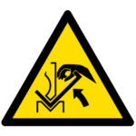 El cartel nos informa de una zona dónde hay una máquina o cualquier elemento que puede coger las manos al usuario y causar un atrapamiento de las mismas.