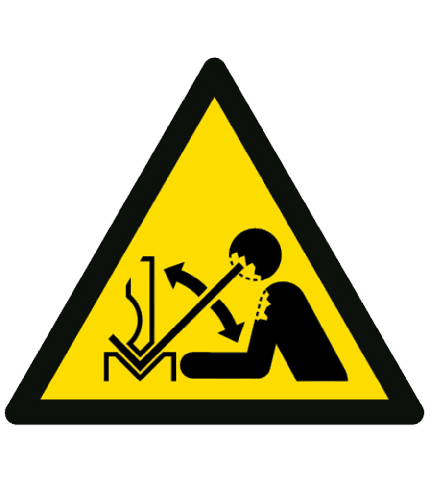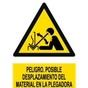 Señal / Cartel de Peligro. Posible desplazamiento del material en la plegadora. Homologada. Según UNE 81-501. PVC 0,7 mm, 2 mm. Aluminio 0,8 mm y Adhesivo. Varios tamaños.