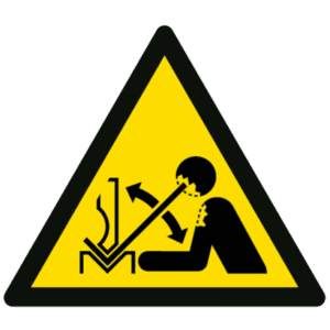 El cartel nos informa de una zona dónde hay una máquina o cualquier elemento que puede coger las manos al usuario y causar un atrapamiento de las mismas.