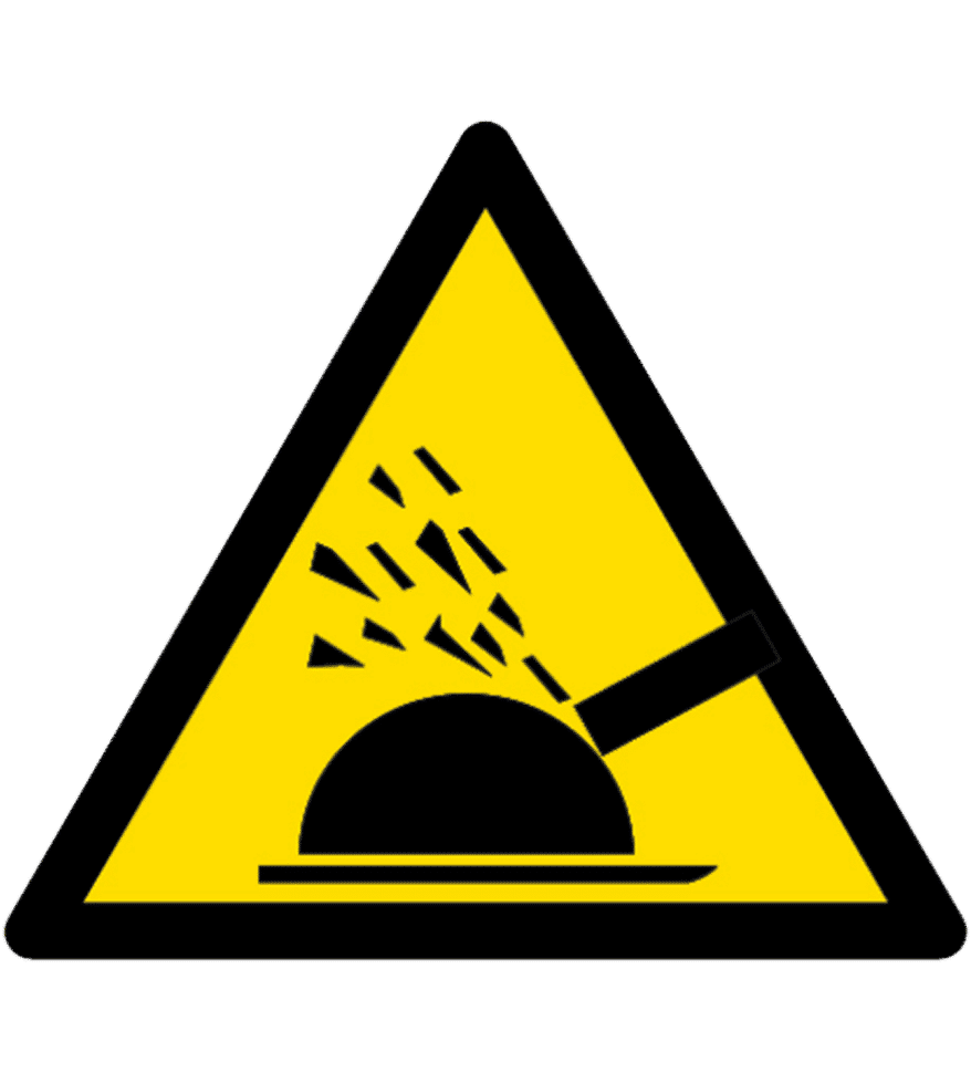 Los pictogramas de advertencia de peligro son de forma triangular de color negro y sobre un fondo amarillo. El amarillo cubrirá al menos el 50% de la señal y tendrá bordes negros, exceptuando el fondo de “materias nocivas o irritantes” que es de color naranja.