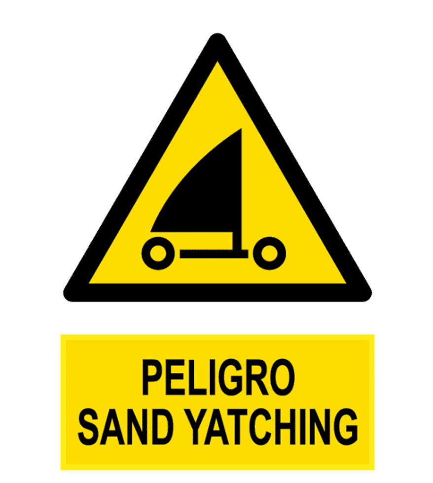 Señal / Cartel de Peligro sand yatching. Homologada. Según UNE 81-501. Aluminino 0.8 mm y Aluminio 1,5 mm. Varios tamaños.