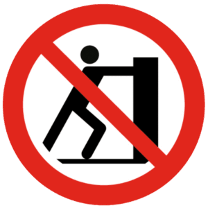 Señal / Cartel de Prohibido empujar. Homologada. Según UNE 81-501. PVC 0,7 mm, 2 mm. Aluminio 0,8 mm y Adhesivo. Varios tamaños.