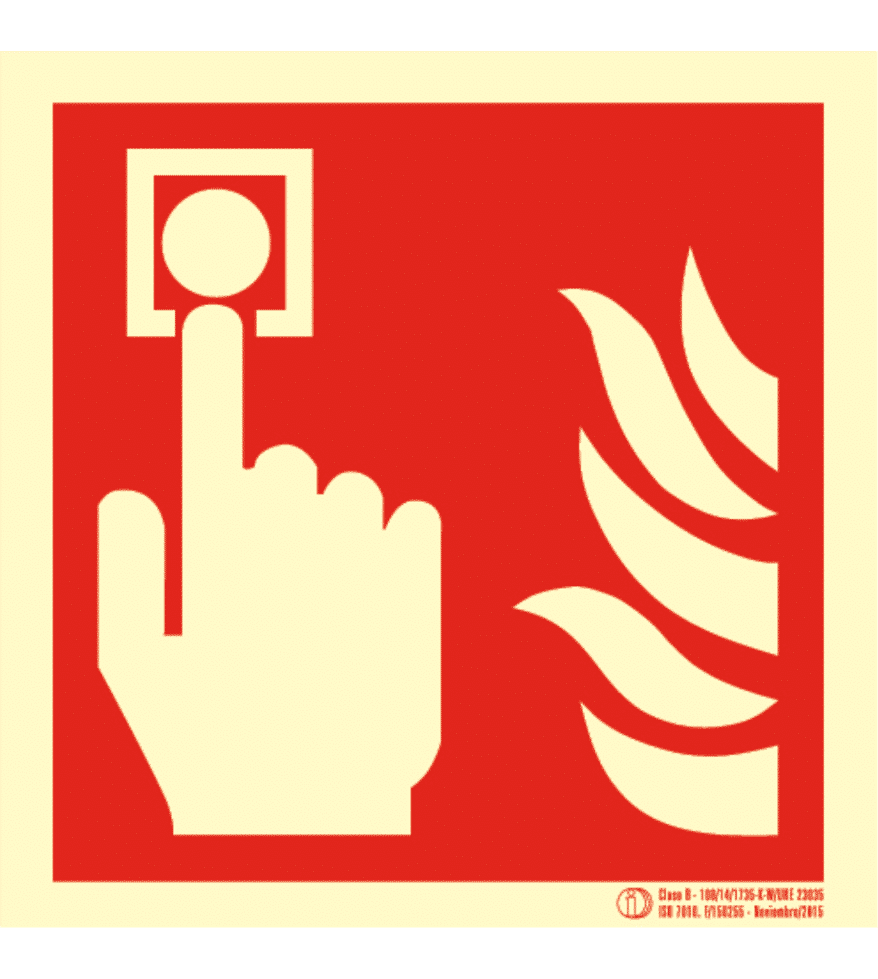 Señal de pulsador de alarma Clase B fotoluminiscente