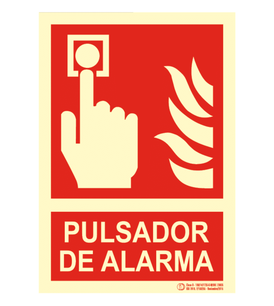Señal / Cartel de pulsador de alarma fotoluminiscente. Clase