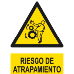 Señal / Cartel de Riesgo de atrapamiento. Homologada. Según UNE 81-501. PVC 0,7 mm, 2 mm. Aluminio 0,8 mm y Adhesivo. Varios tamaños.