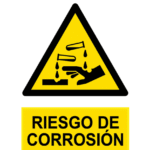 Señal / Cartel de Riesgo de corrosión. Homologada. Según UNE 81-501. PVC 0,7 mm, 2 mm. Aluminio 0,8 mm y Adhesivo. Varios tamaños.